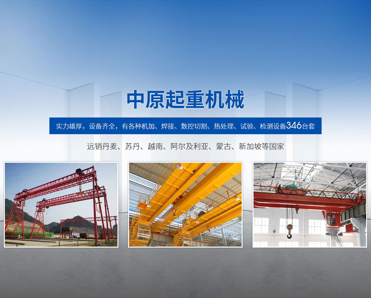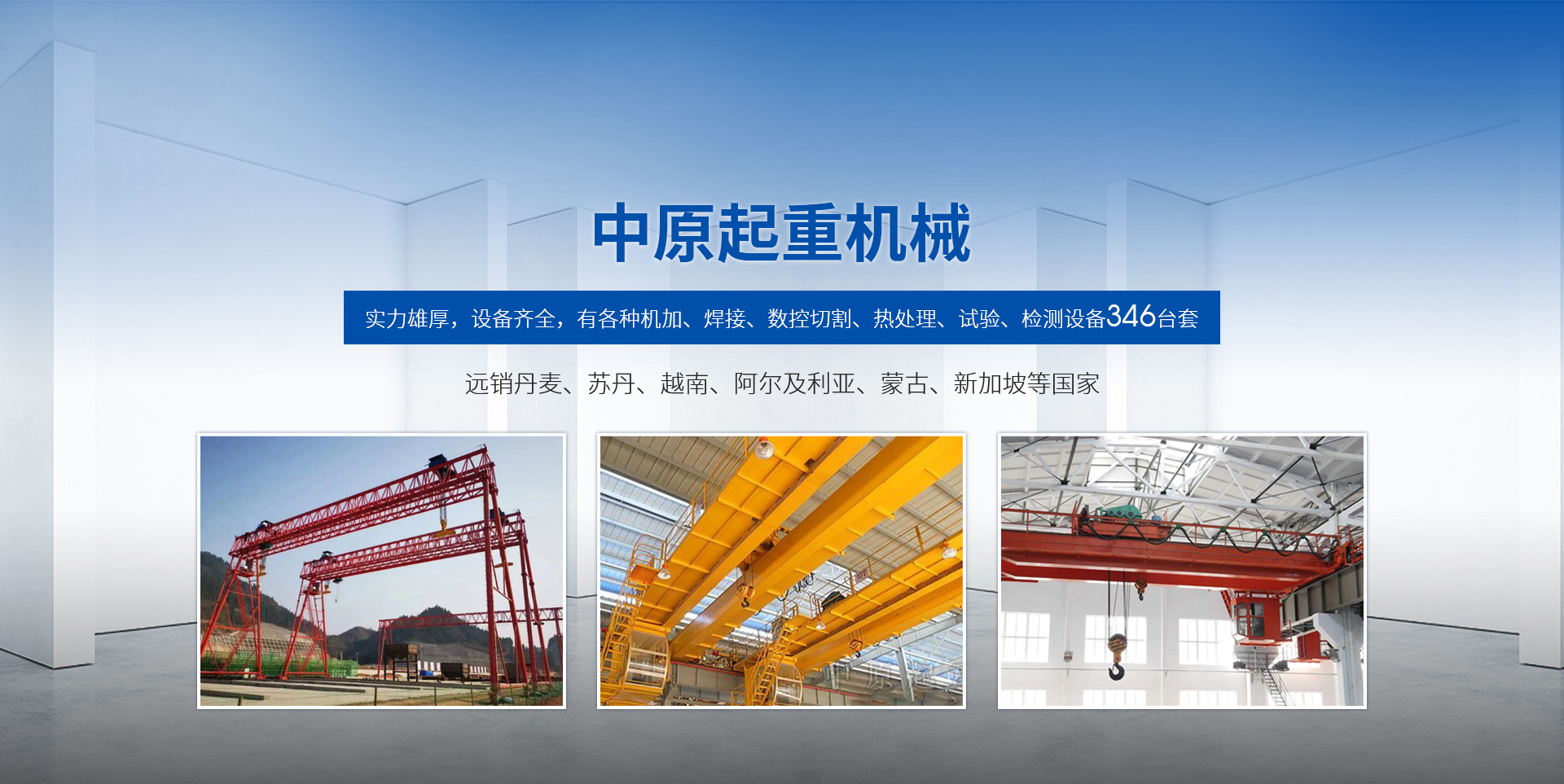 新鄉(xiāng)市中原起重機(jī)械有限公司成立于2000年,地處中原,輻射全國28個省市自治區(qū),設(shè)外埠經(jīng)銷處、辦事處268個。產(chǎn)品行銷工礦、建材、化工、冶金、電力、交通、鐵路、油田、港口等各個行業(yè)。遠(yuǎn)銷丹麥、蘇丹、越南、阿爾及利亞、蒙古、新加坡等國家。  公司實(shí)力雄厚,設(shè)備齊全,有各種機(jī)加、焊接、數(shù)控切割、熱處理、試驗(yàn)、檢測設(shè)備7臺;有機(jī)加工、熱處理、單、雙梁橋門機(jī)生產(chǎn)、檢測、安裝等9個車間,研究中心、運(yùn)輸公司、安裝維修服務(wù)公司等機(jī)構(gòu),?  主要產(chǎn)品有:LD型1~20噸電動單梁起重機(jī)系列產(chǎn)品;5~600噸通用橋式、門式、冶金、上旋轉(zhuǎn)下旋轉(zhuǎn)電磁吊、絕緣、抓斗、防爆起重機(jī)系列產(chǎn)品;LH3~100噸葫蘆雙梁系列產(chǎn)品;MH5~32噸葫蘆門式系列產(chǎn)品;0.5~40噸CD1、MD1鋼絲繩電葫蘆系列產(chǎn)品;HS1型0.5~20噸手動葫蘆系列產(chǎn)品;0.5~10噸環(huán)鏈電動葫蘆系列;0.5~40噸彎道電動葫蘆系列產(chǎn)品;裝卸橋、造船門機(jī)、架橋機(jī)、鑄造吊和水電大噸位起重機(jī)系列產(chǎn)品。  公司建立了強(qiáng)有力的質(zhì)量保證體系和生產(chǎn)過程的質(zhì)量控制系統(tǒng),嚴(yán)格執(zhí)行國家設(shè)計(jì)、生產(chǎn)標(biāo)準(zhǔn),有嚴(yán)格的生產(chǎn)工藝過程和標(biāo)準(zhǔn),嚴(yán)格的檢驗(yàn)、檢測標(biāo)準(zhǔn)和手段。
